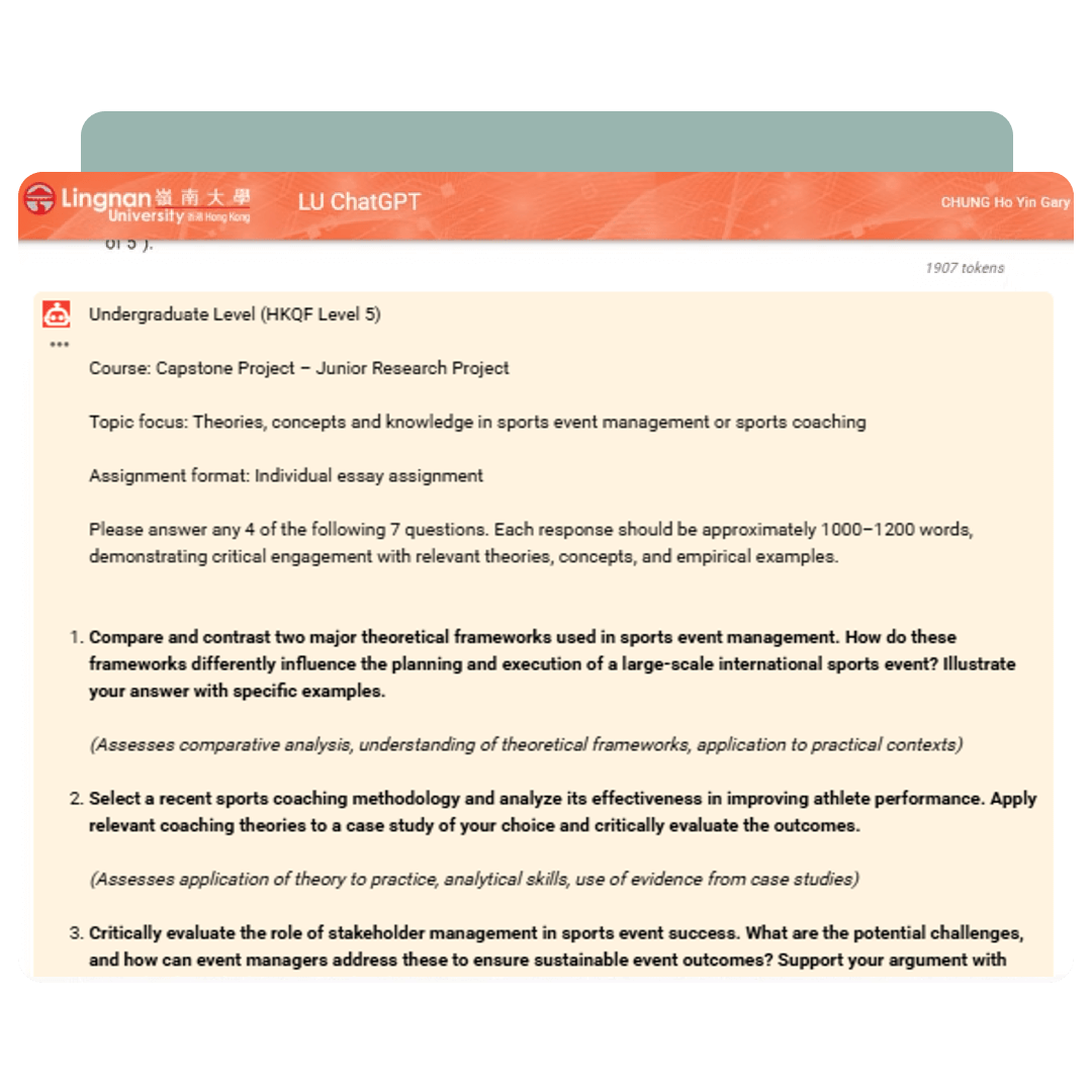 Enter the prompt in ChatGPT for Lingnan University to start generating questions.